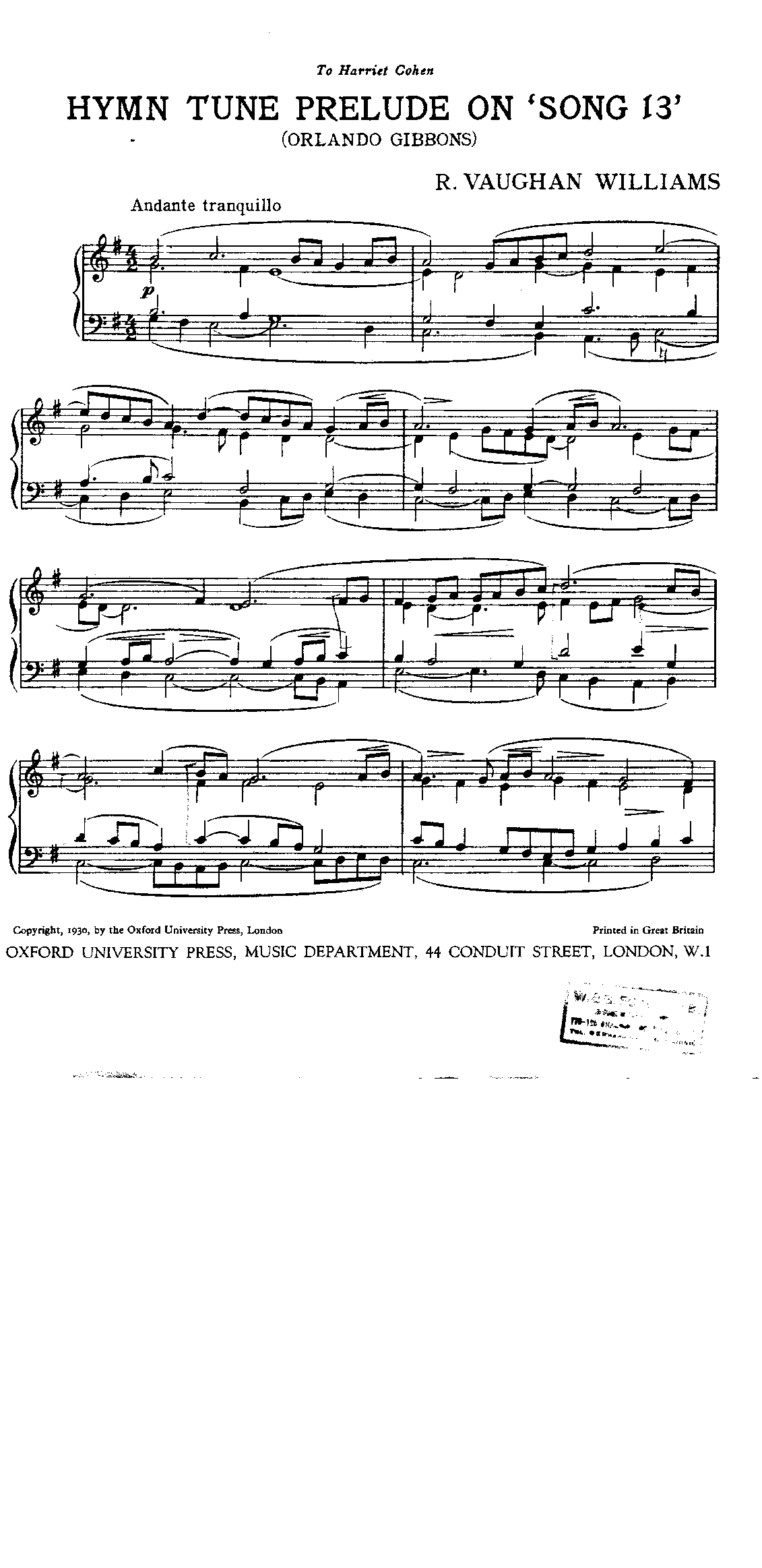 | Dedication | Harriet Cohen |