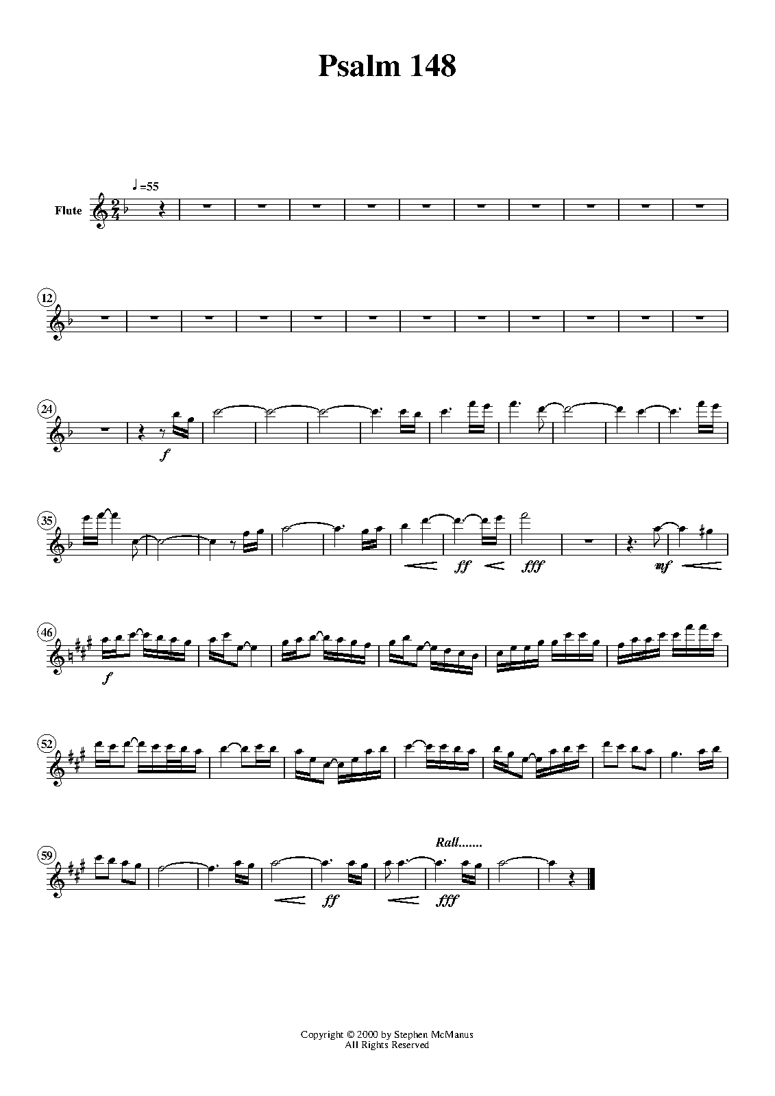 | Instrumentation | unison chorus (congregation), mixed chorus (SATB), flute, guitar (or piano), timpani, organ, strings |