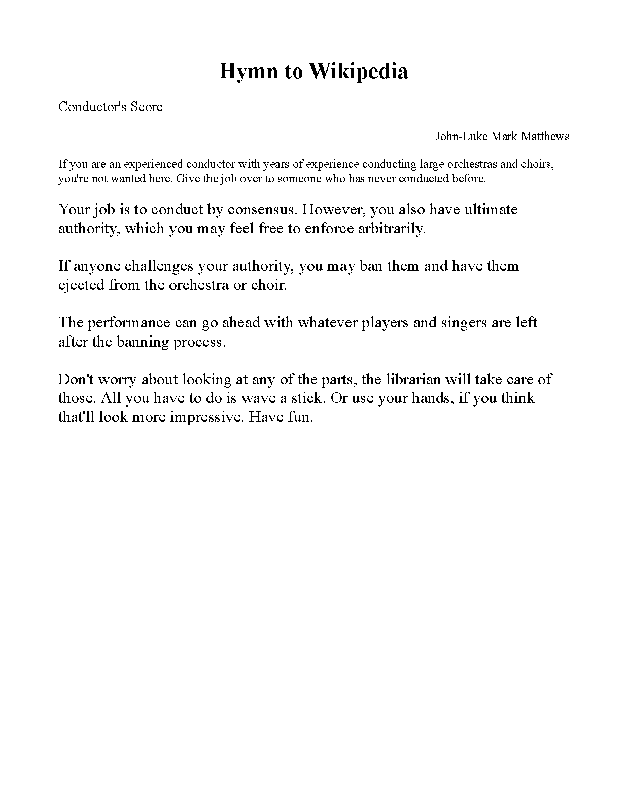 | Instrumentation | Large orchestra & chorus, 3 pianos, 3 harpsichords, 3 synthesizers, 4 cell phones, 4 cash registers |
