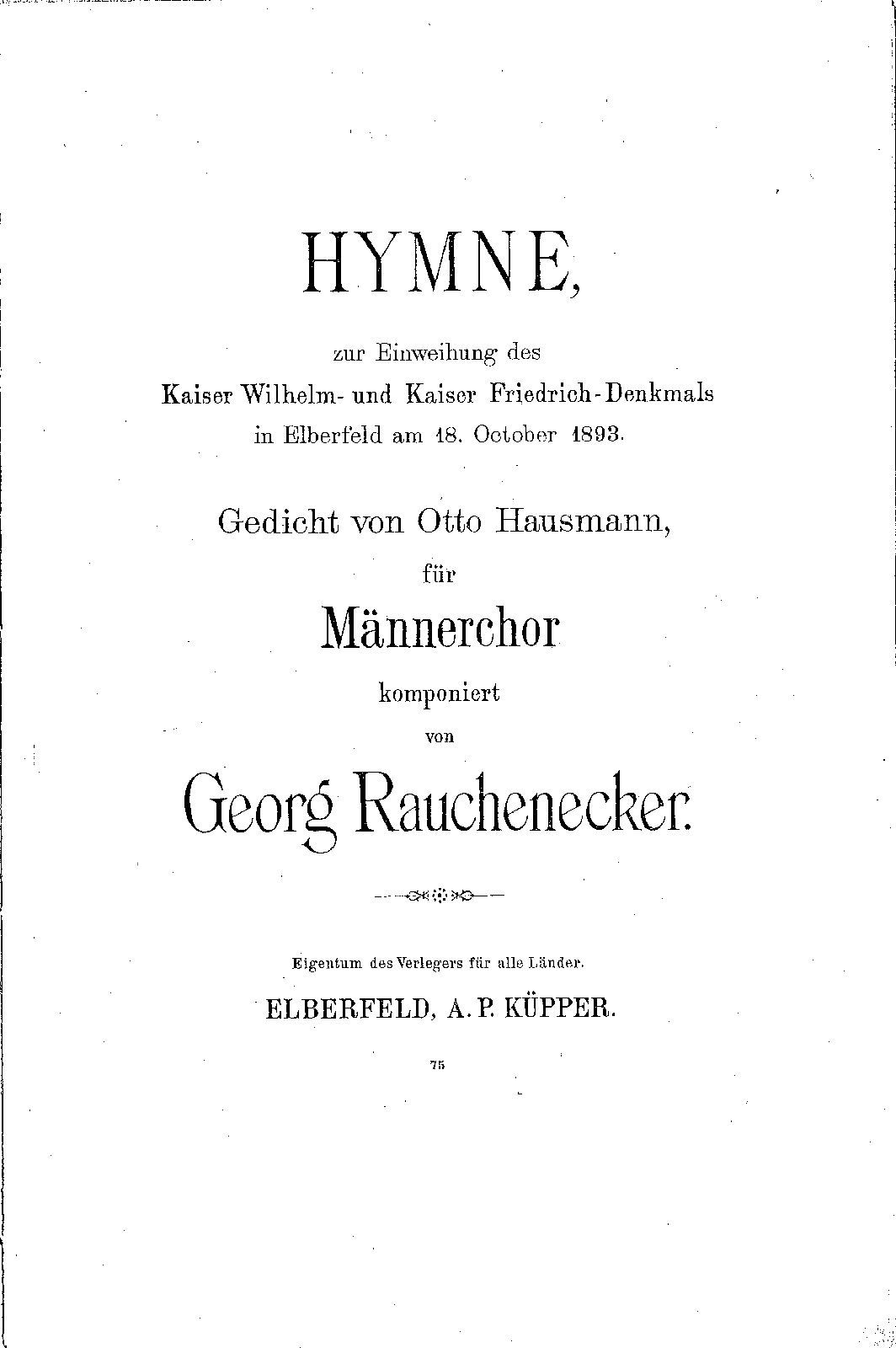 | Work Title | Hymne, zur Einweihung des Kaiser Wilhelm- und Kaiser Friedrich-Denkmals in Elberfeld am 18. October 1893 |