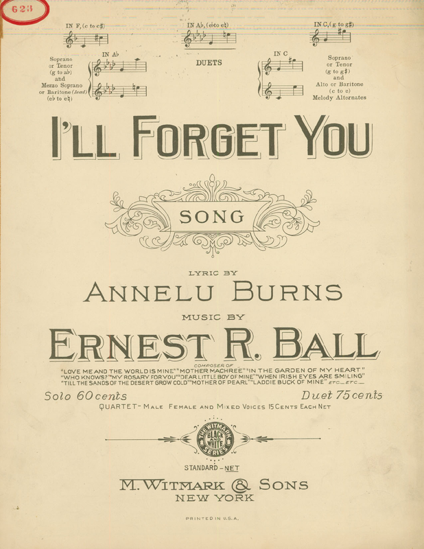 Publisher. Info. New York: M. Witmark & Sons, 1921. Plate 16387-4.