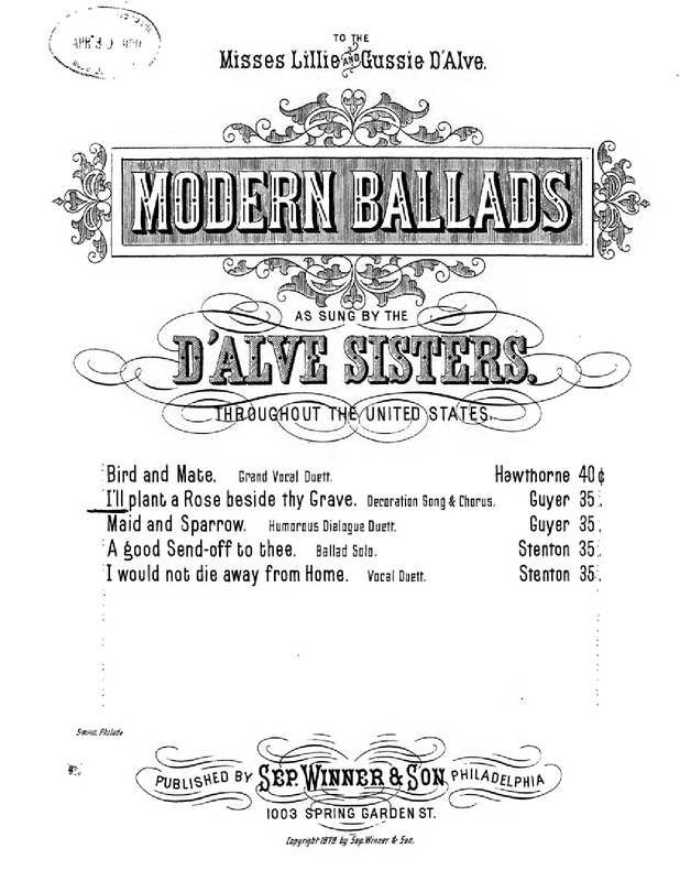 | Dedication | Misses Lillie and Gussie D'Alve |