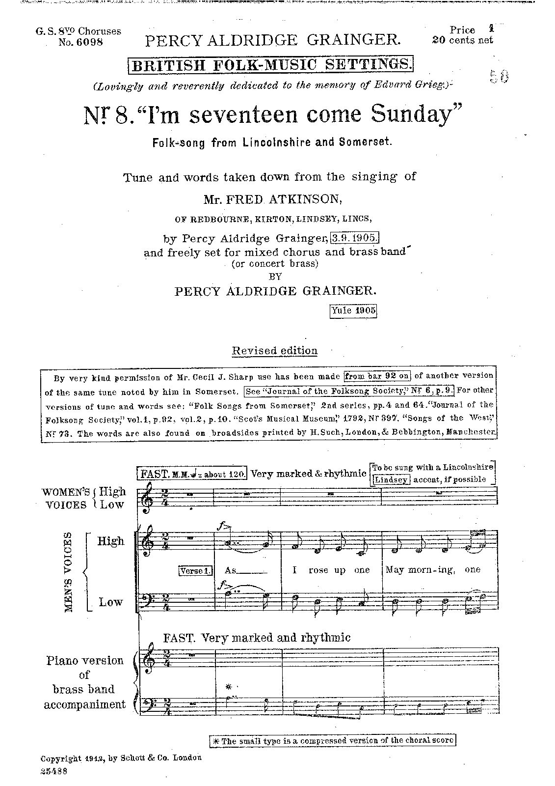 | Dedication | Lovingly and reverently dedicated to the memory of Edvard Grieg |