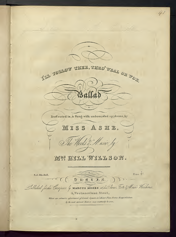 | Alternative. Title | I'll follow thee, thro' weal or woe, Ballad ... the words & music by Mrs Hill Willson |