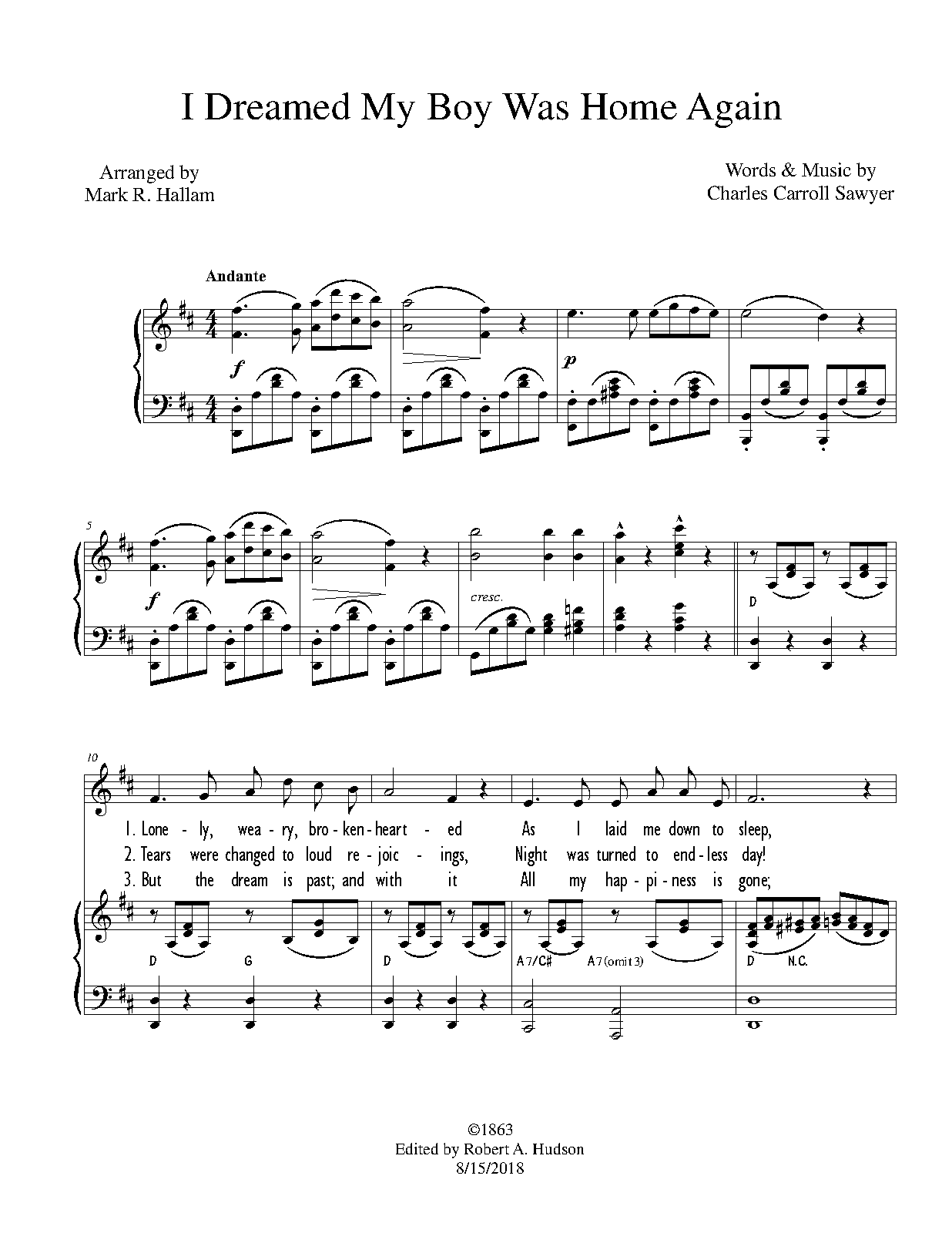 WorldCat has 2 entries for this but oddly, the arrangement (1863) pre-dates the one that has only Sawyer's name associated with it. Hence, the instrumentation for the original is unknown.