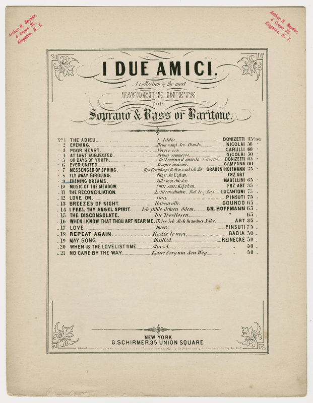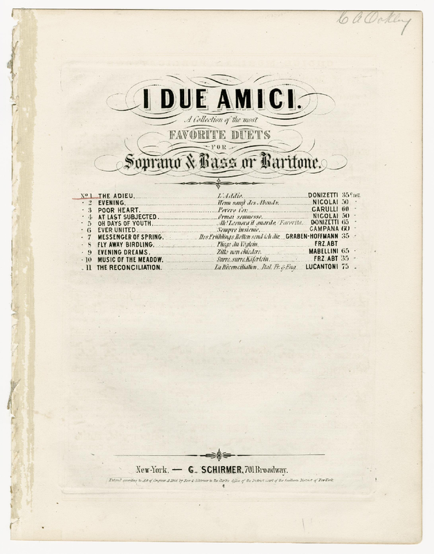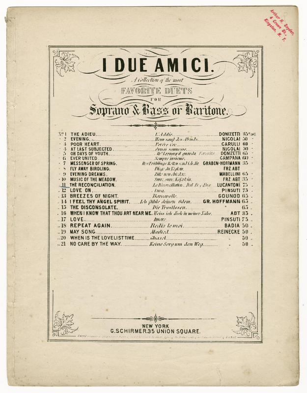 Publisher. Info. New York: G. Schirmer, 1869. Plate 1065.