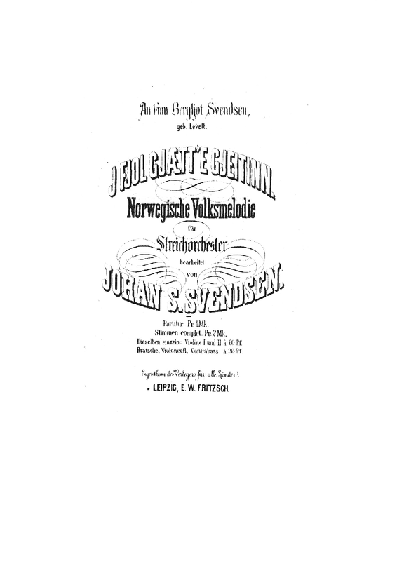 | Dedication | Bergljot Svendsen (née Sarah Levett — composer's wife) |