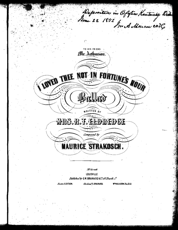 | Work Title | I Loved Thee not in Fortune's Hour |