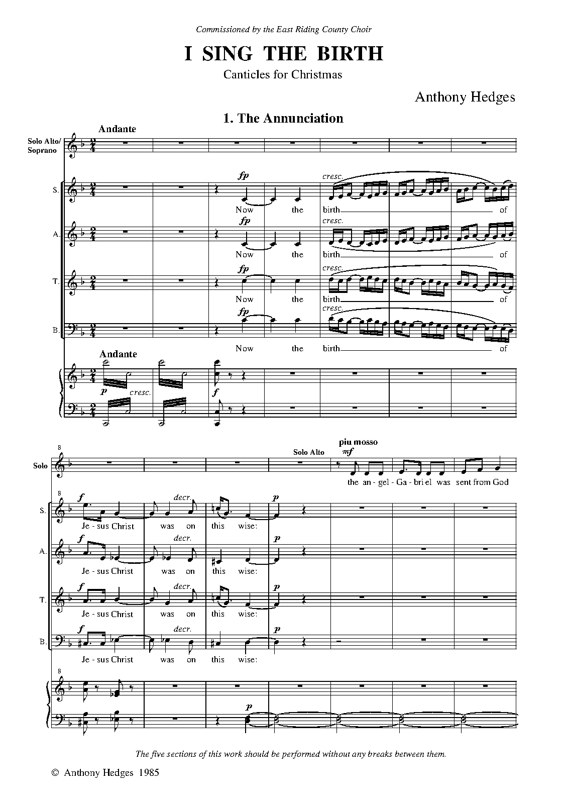 Commissioned by the East Riding County Choir. The last section is also published separately as "Fantasia on A Virgin Most Pure"