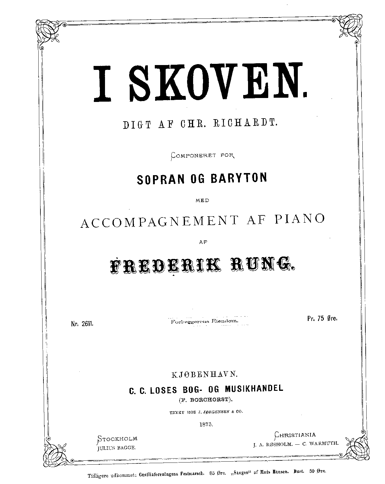 | Alternative. Title | I Skoven, Digt af Chr. Richardt for Sopran og Baryton med Accompagnement af Piano |