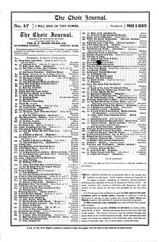 | Genre Categories | Anthems; Religious works; For mixed chorus, organ; |