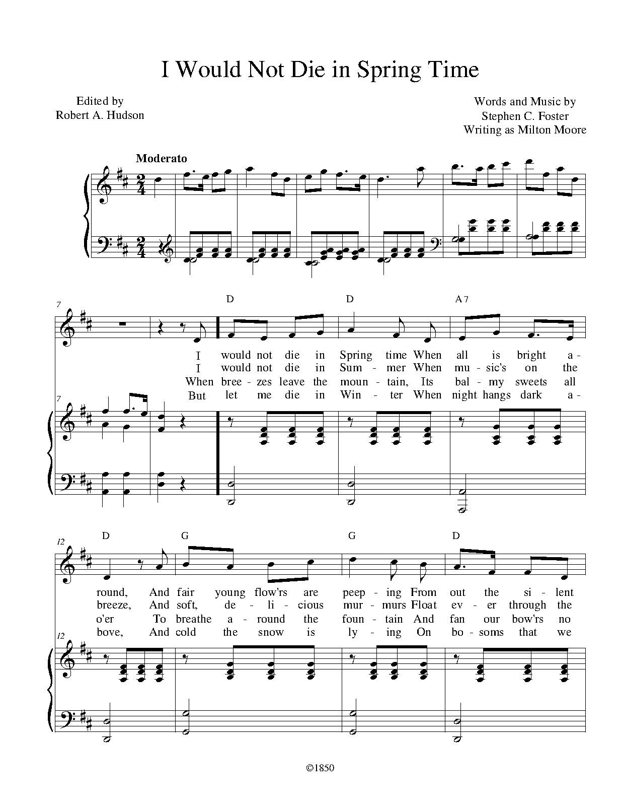| Extra Information | According to Musica, Milton Moore is one of the nom-de-plumes of Stephen Foster. It stands for John Milton and Thomas Moore. |