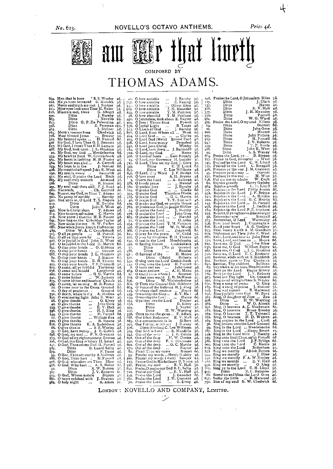 | Genre Categories | Anthems; Religious works; For mixed chorus, organ; |
