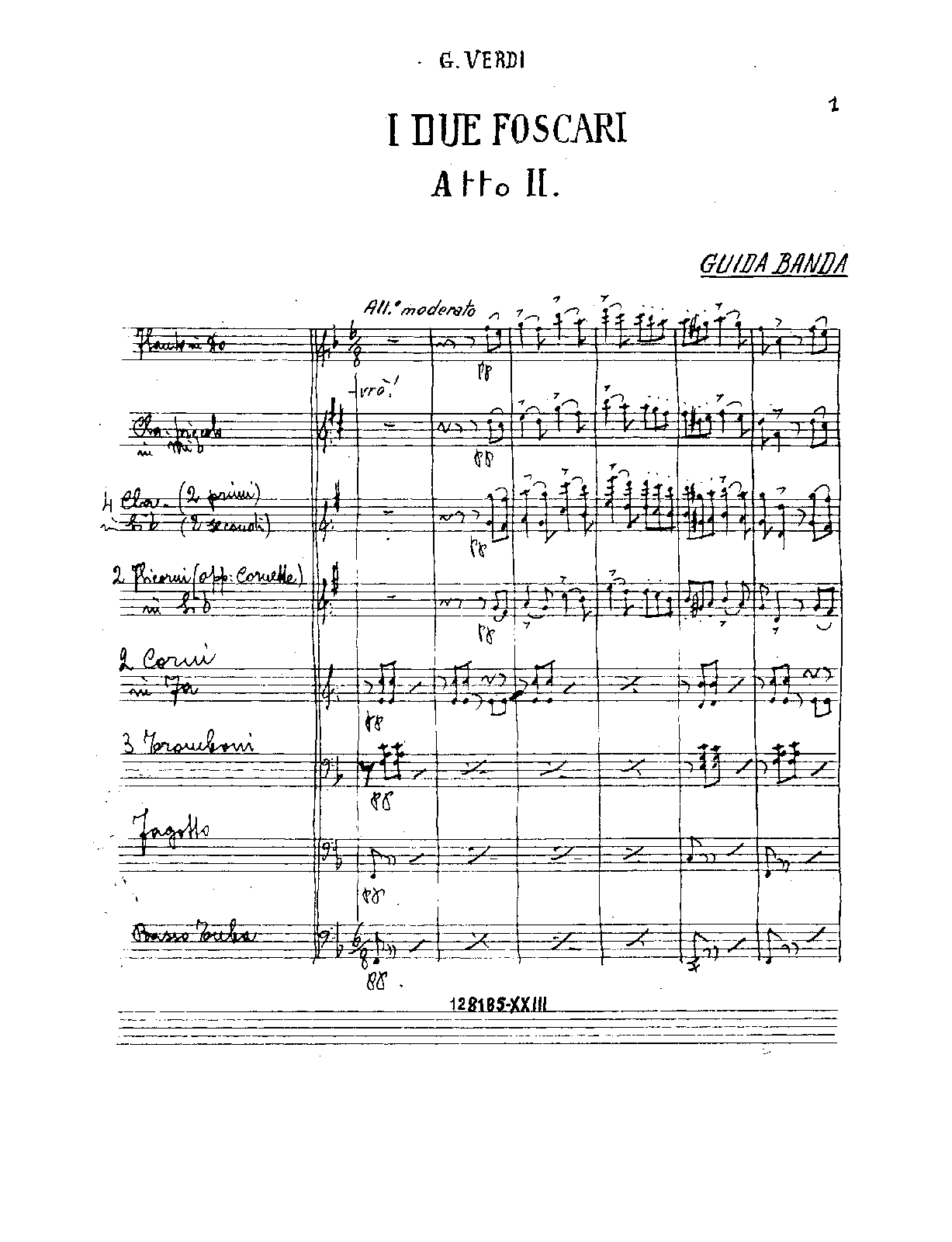 - Membri del Consiglio dei Dieci e Giunta, Ancelle di Lucrezia, Dame veneziane, Popolo e Maschere d'ambo i sessi, Il Messer Grande, due figlioletti di Jacopo Foscari, Comandadori, Carcerieri, Gondolieri, Marinai, Popolo, Maschere, Paggi del Doge