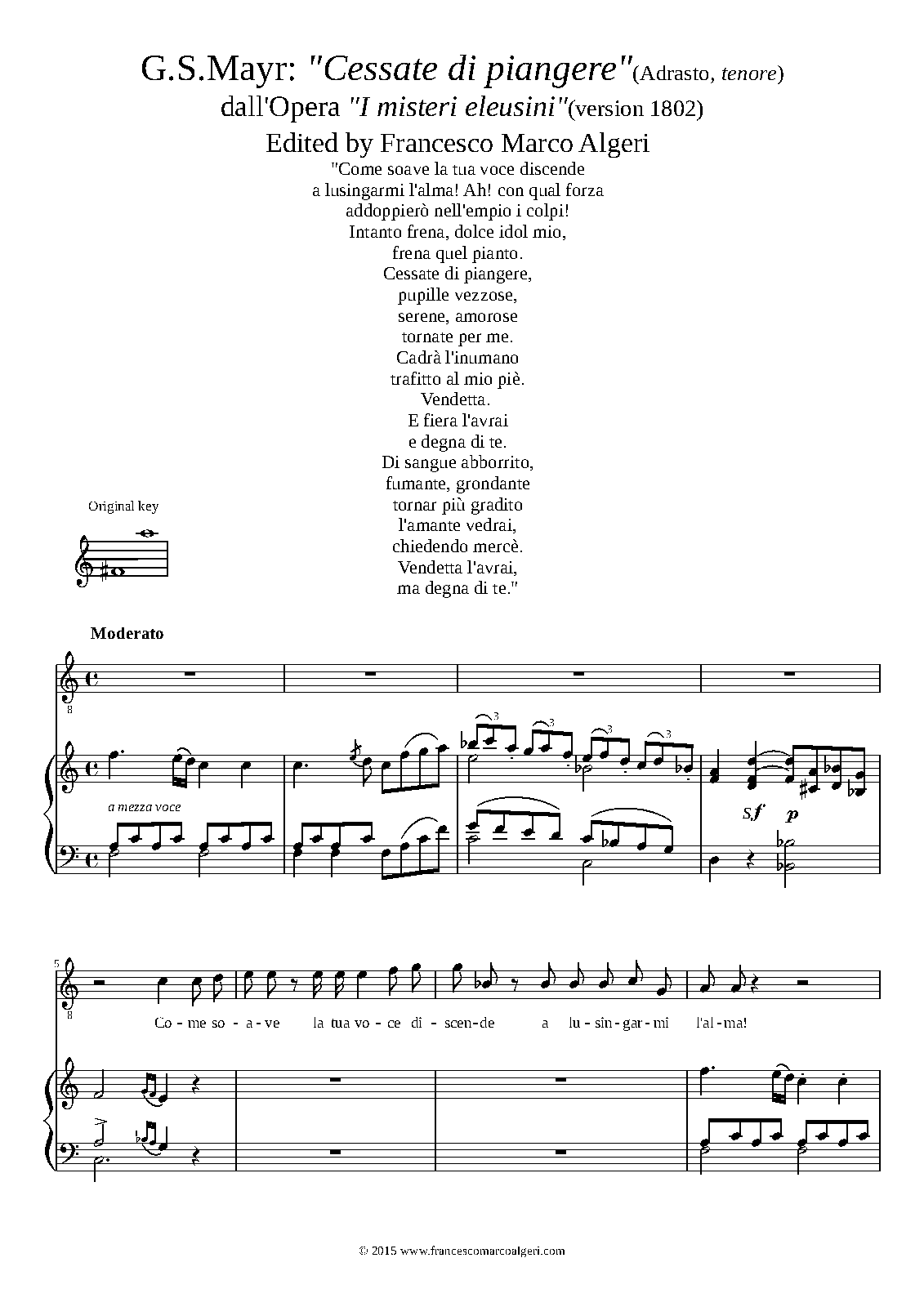 Misc. Notes Opera "I Misteri Eleusini" version 1802