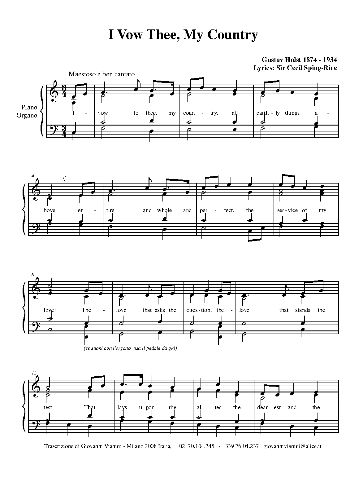 | Name Translations | I Vow to Thee, My Country; 我は汝に誓う、我が祖国よ; 내 조국이여, 나 그대에게 맹세하노라; I Vow to Thee, my Country; ไอวาวทูดี มายคันทรี; |