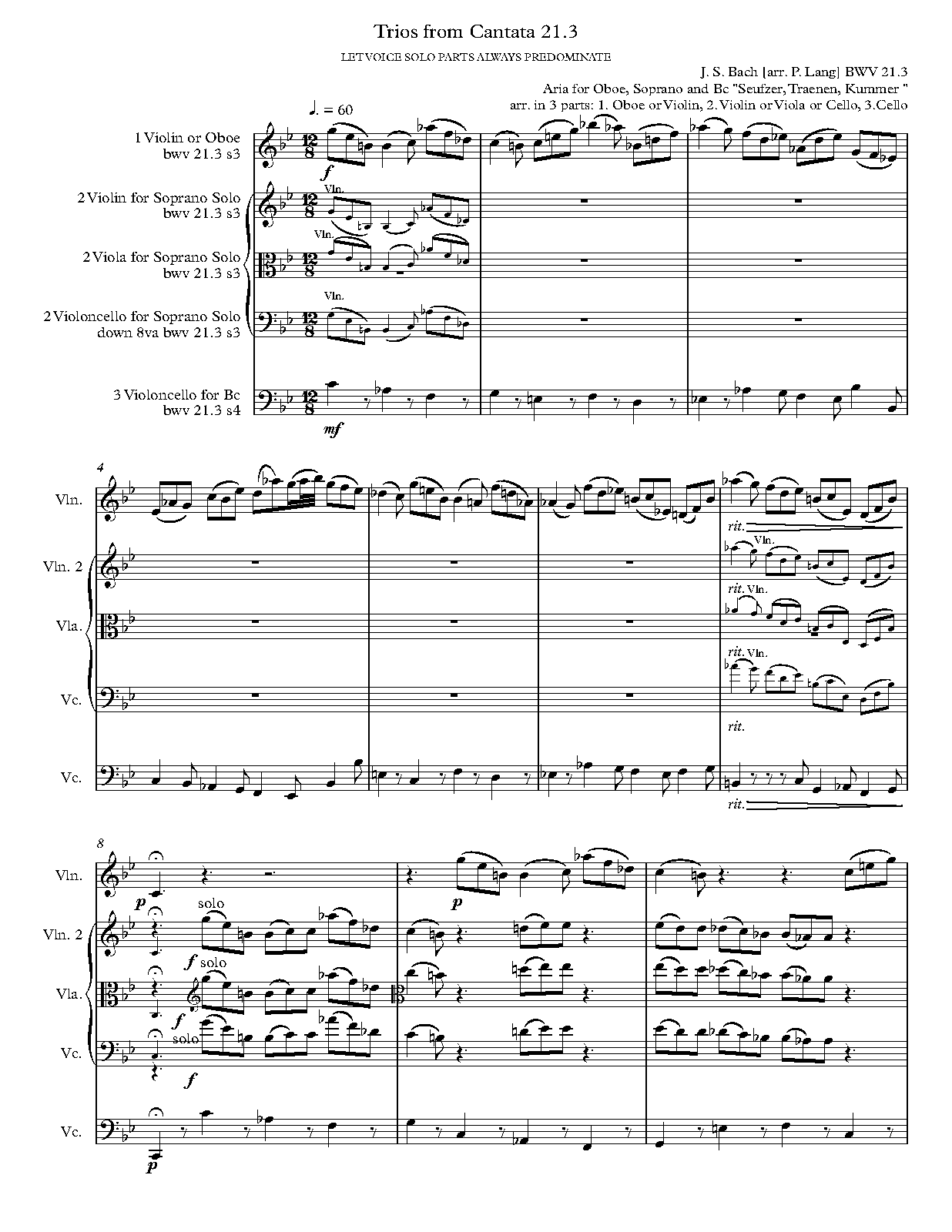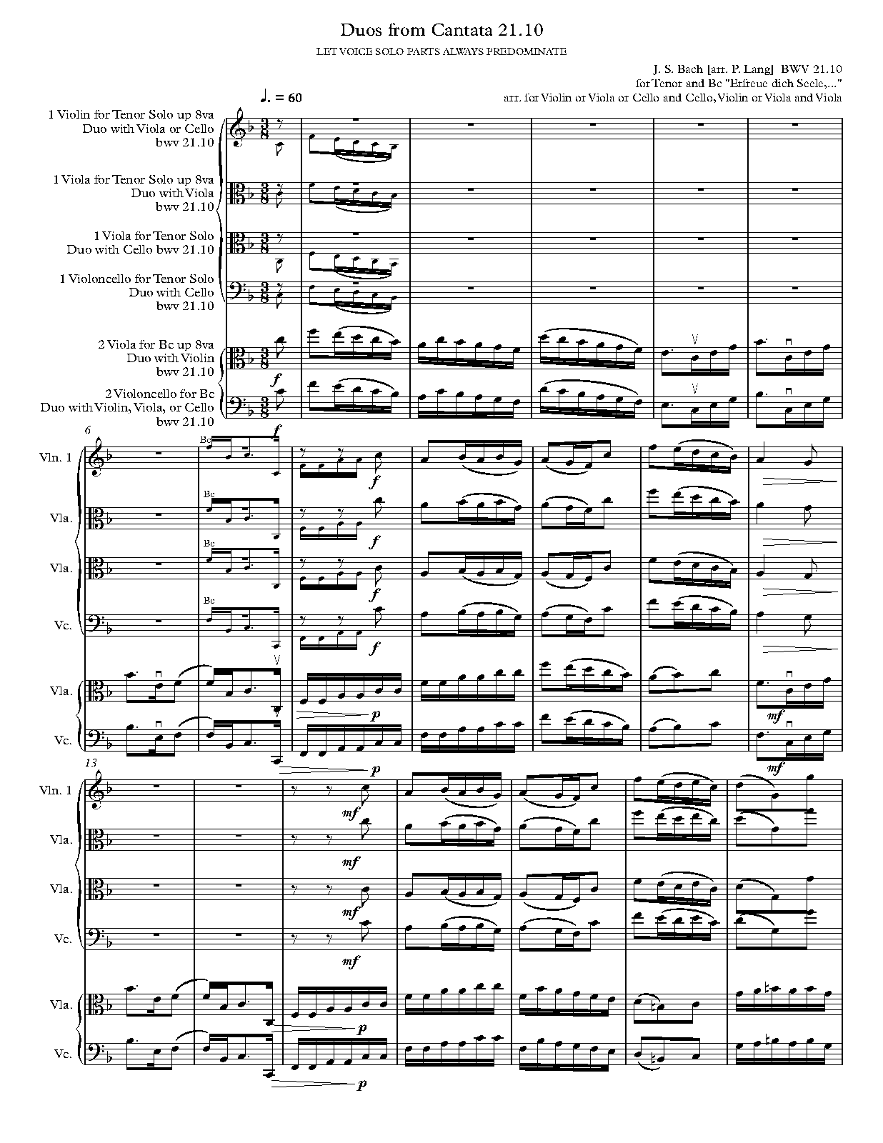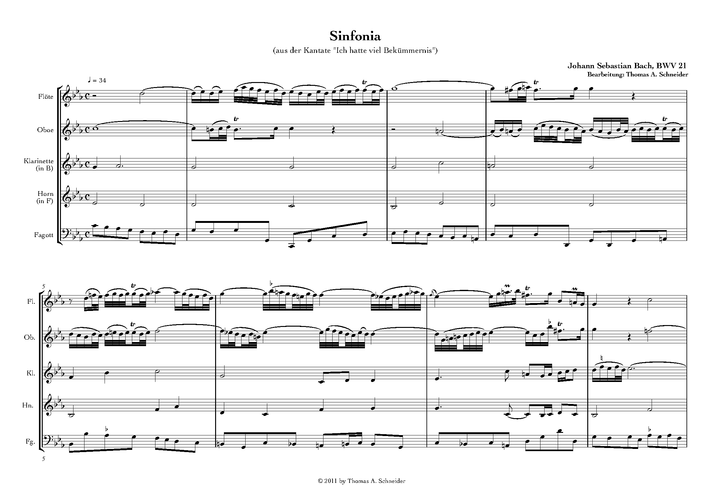 ⇒ 11 more: 2. Chorus: 'Ich hatte viel Bekümmernis in meinem Herzen' • 3. Aria: 'Seufzer, Tränen, Kummer, Not' • 4. Recitativo: 'Wie hast du dich, mein Gott' • 5. Aria: 'Bäche von gesalznen Zähren' • 6. Chorus: 'Was betrübst du dich, meine Seele' • 7. Recitativo: 'Ach Jesu, meine Ruh' • 8. Duet Aria: 'Komm, mein Jesu, und erquicke; Ja, ich komme und erquicke' • 9. Chorus (+Chorale): 'Sei nun wieder zufrieden, meine Seele' • 10. Aria: 'Erfreue dich, Seele, erfreue dich, Herze' • 11. Chorus: 'Das Lamm, das erwürget ist' • Engraving files (MuseScore)