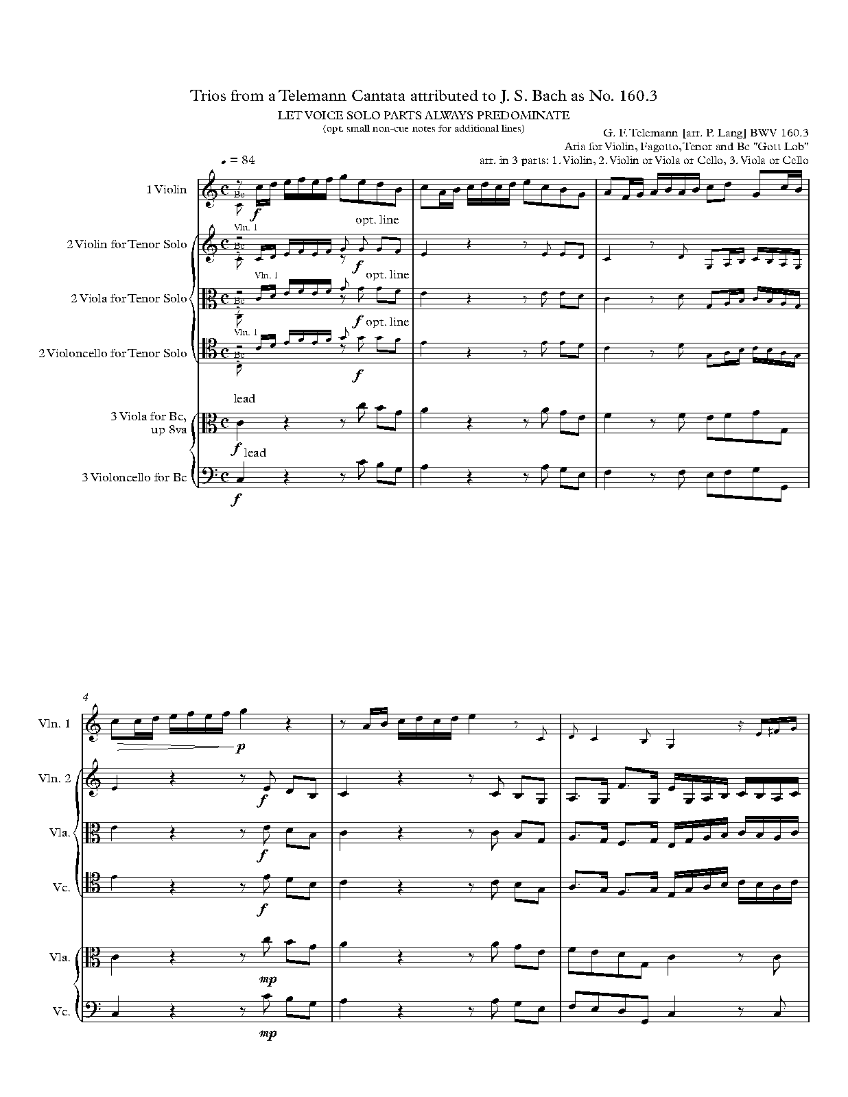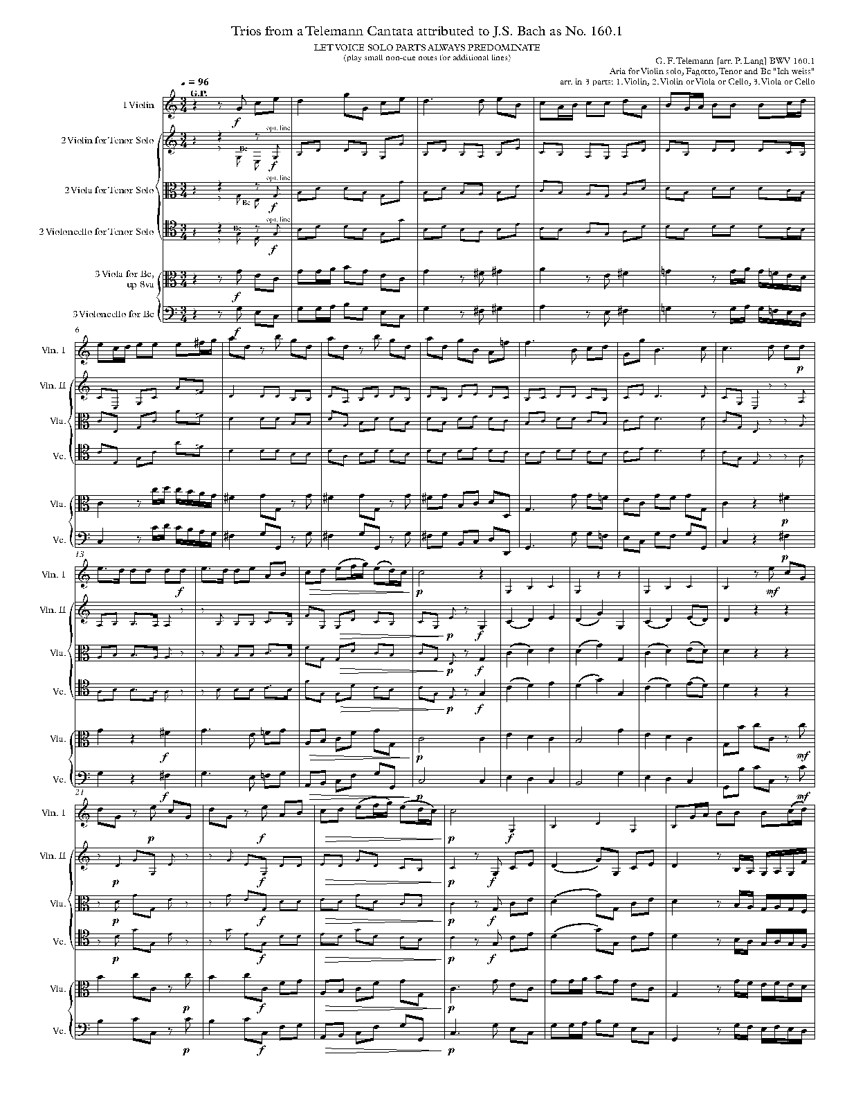 Opus/Catalogue NumberOp./Cat. No. TWV 1:874 ; (BWV 160) ; BWV Anh.III 157 ; BNB II/T/4