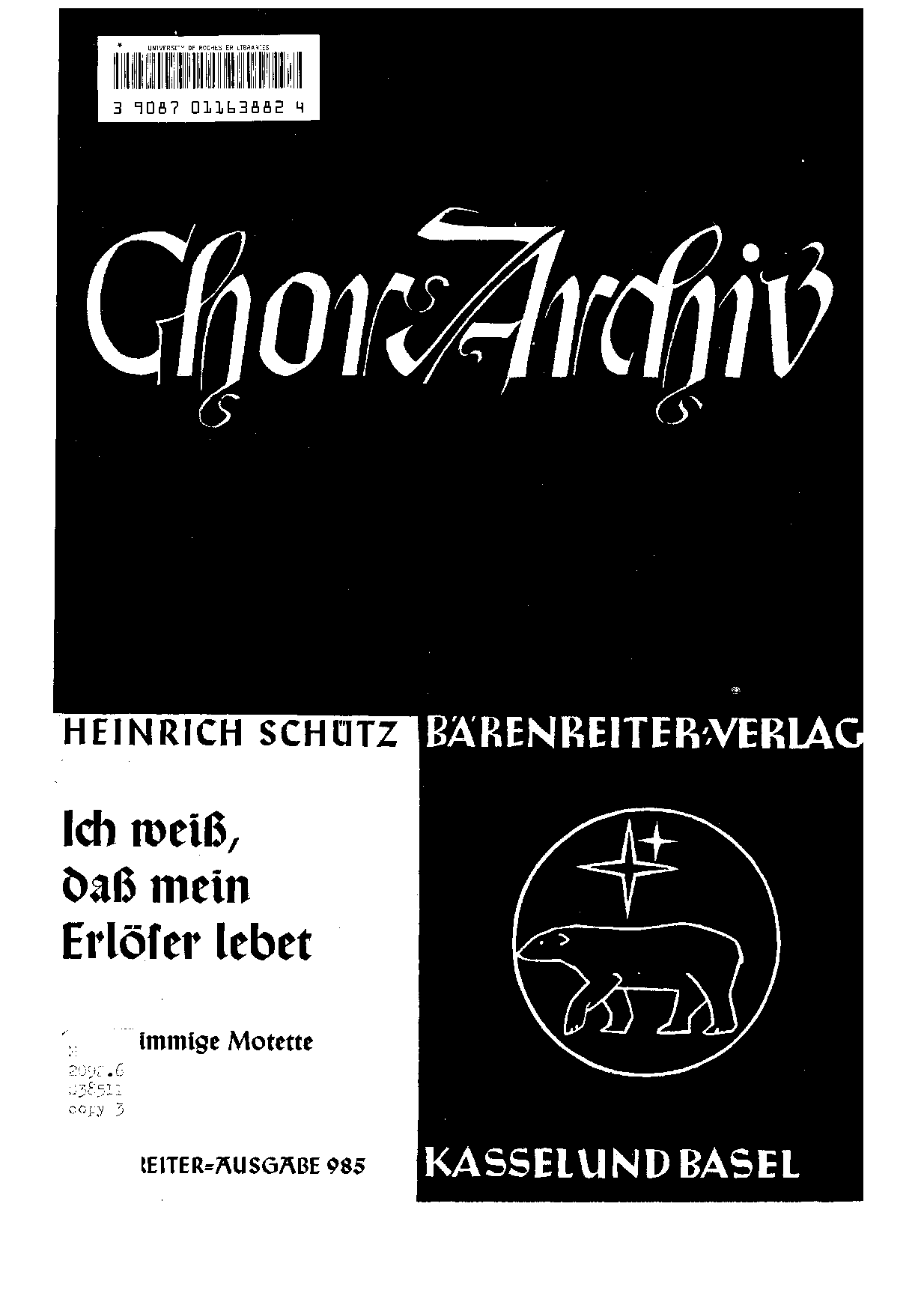 | Work Title | Ich weiss, dass mein Erlöser lebet, SWV 457 |
