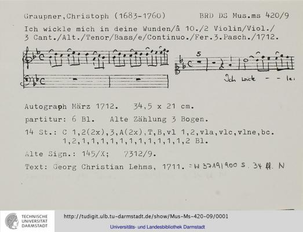 | Opus/Catalogue NumberOp./Cat. No. | GWV 1130/12 |