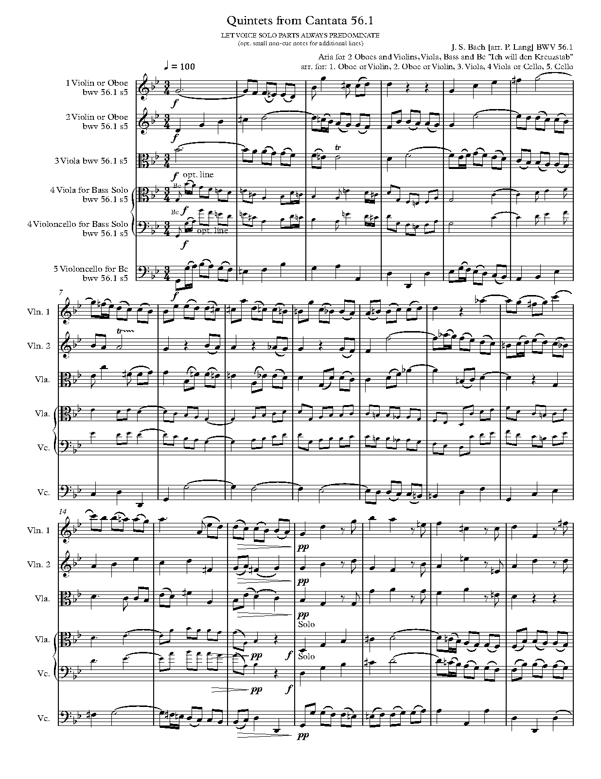For Quintets: 2 Oboes ad lib. and Strings (Lang)