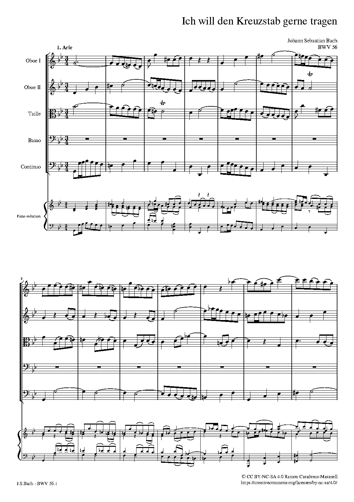 5 more: 2. Recitative: 'Mein Wandel auf der Welt' • 3. Aria: 'Endlich, endlich wird mein Joch' • 4. Recitative and Arioso: 'Ich stehe fertig und bereit' • 5. Chorale: 'Komm, o Tod, du Schlafes Bruder' • Engraving files (MuseScore)