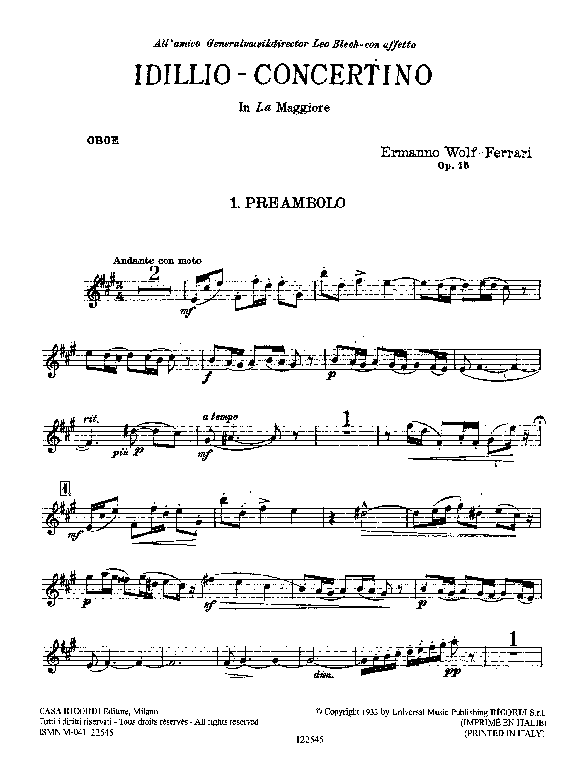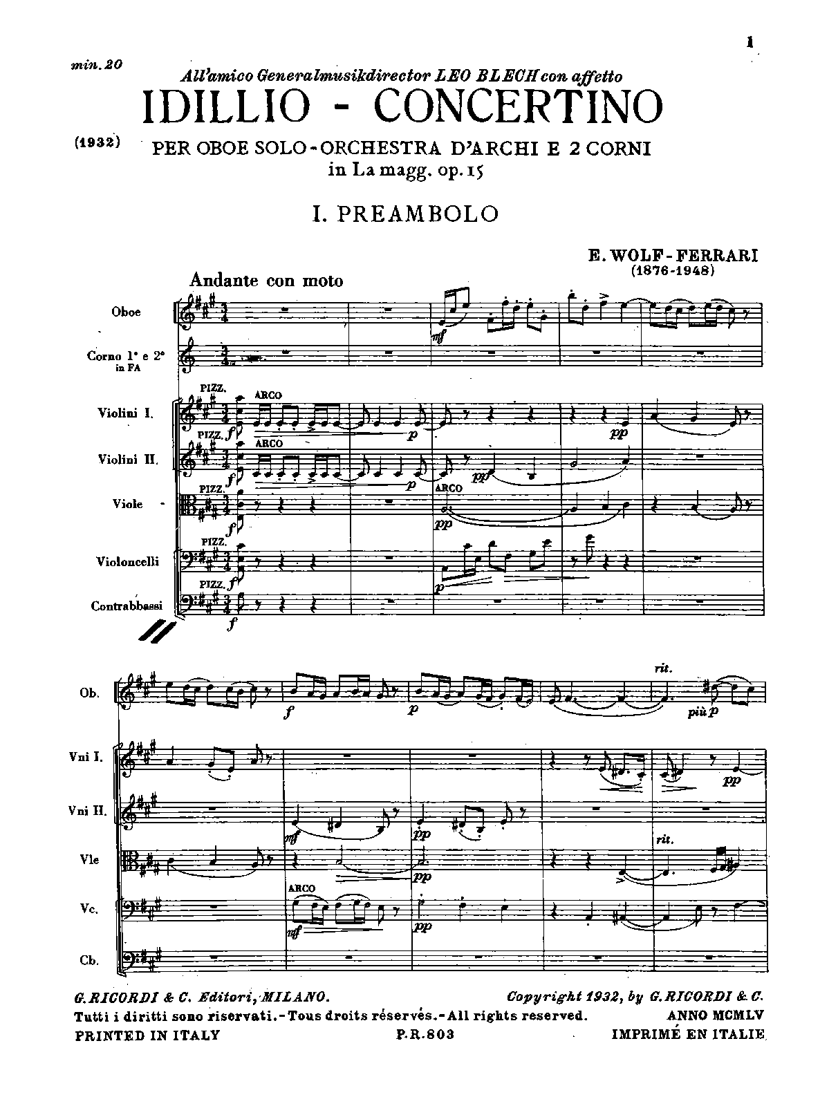 | Dedication | All'amico Generalmusikdirector Leo Blech-con affetto |