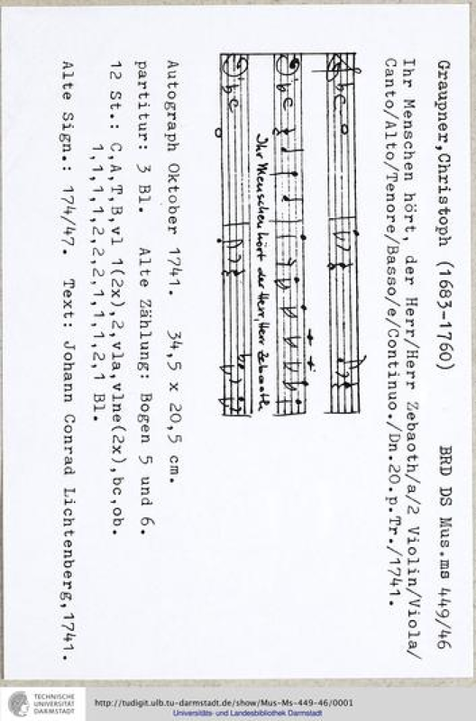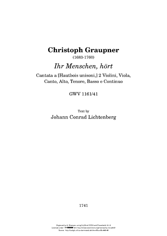 | Librettist | Johann Conrad Lichtenberg (1689-1751) |