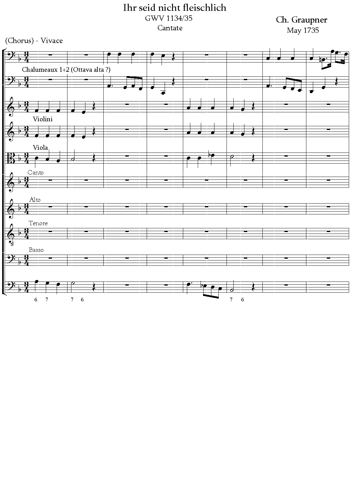 | Instrumentation | SATB, flute, 2 chalumeaux, strings, continuo |