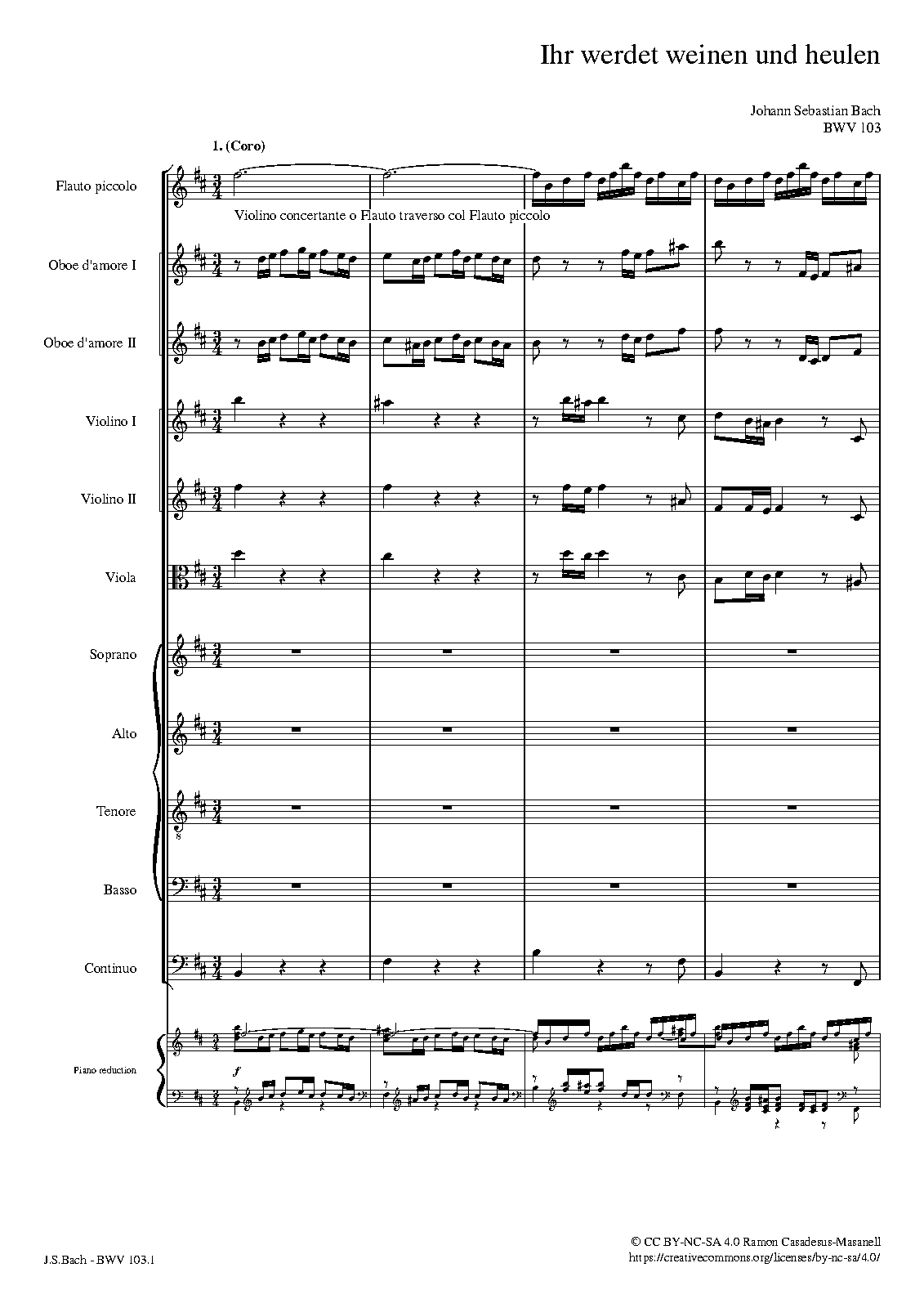 Opus/Catalogue NumberOp./Cat. No. BWV 103 ; BC A 69