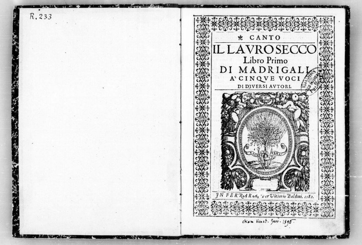 Composers: Innocentio Alberti, Giovanni Bardi, Girolamo Belli, Lelio Bertani, Claudio da Correggio (Merulo), Hippolito Fiorino, Vincenzo Fronti, Andrea Gabrieli, Ruggiero Giovanelli, Giulio Heremita, Marc'Antonio Ingegnieri, Paolo Isnardi, Luzzasco Luzzaschi, Giovanni di Macque, Franceso Manara, Luca Marenzio, Tiburtio Massaini, Alessandro Milleville, Giovan Battista Mosto, Alberto dal Occa, Nicoló Peruve, St. Francesco Pigna, Costanzo Porta, Annibal Stabile, Bartolomeo Spontone, Alessandro Striggio, Horatio Vecchi, Paolo Virchi, Giaches d'Wert, Annibal Zoilo.
