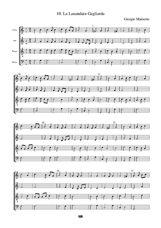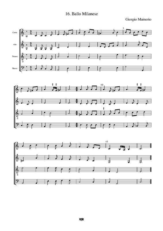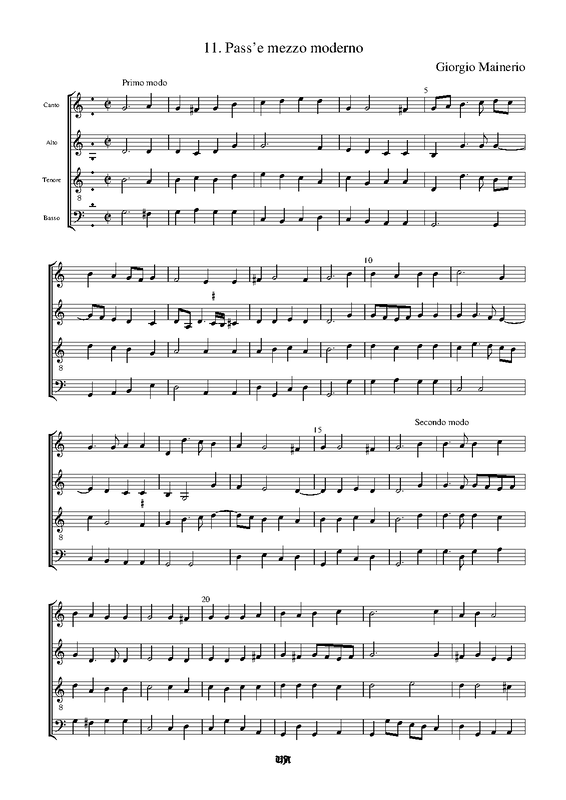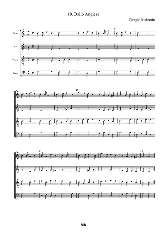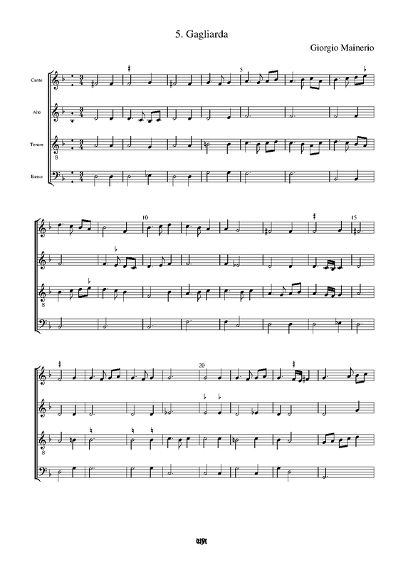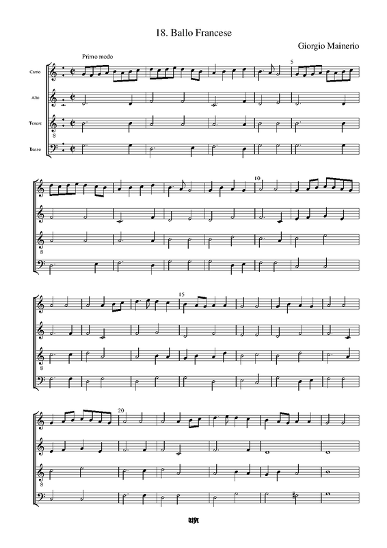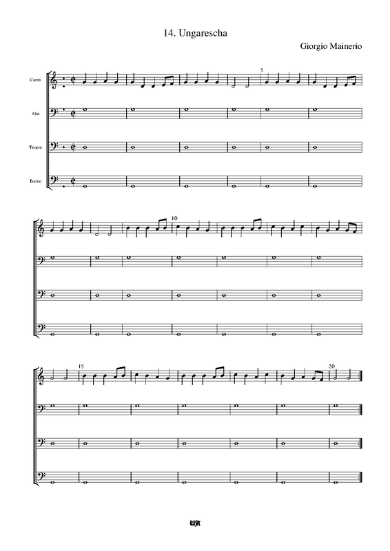 | Instrumentation | instrumentation unspecified, but each dance is "canto, alto, tenore, basso" (SATB) |