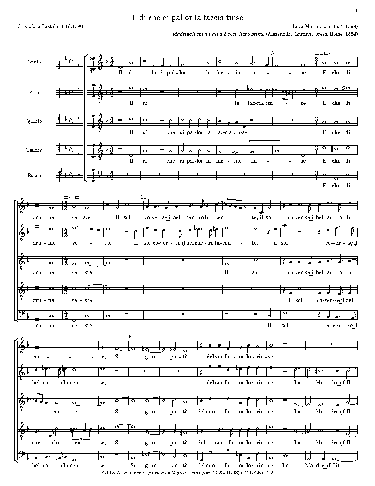 | First Publication | 1584 in Madrigali spirituali a 5 voci, libro primo (Rome: Alessandro Gardano press) |