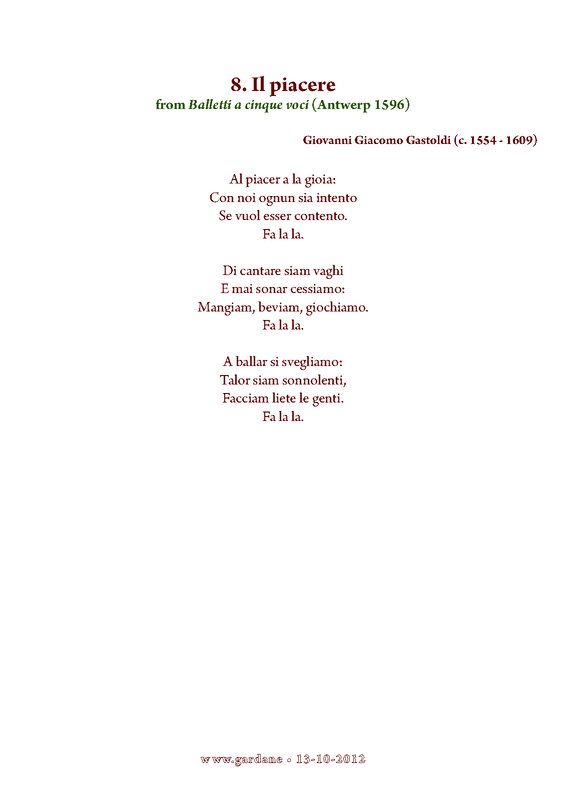 | First Publication | 1591 in Balletti a cinque voci (No.8) |