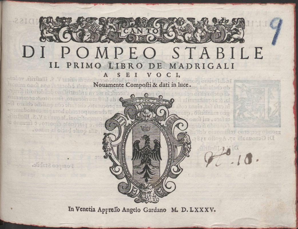 | Alternative. Title | Di Pompeo Stabile il primo libro de madrigali a sei voci, novamente composti et dati in luce. |