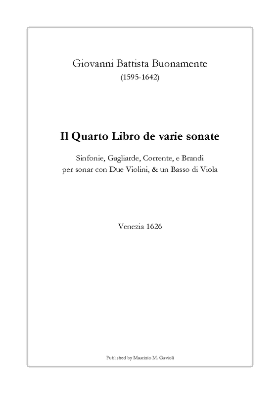 | Alternative. Title | Il quarto libro de Varie Sonate, Sinfonie, Gagliarde, Corrente e Brandi Per Sonar con Due Violini, & vn Basso di Viola |