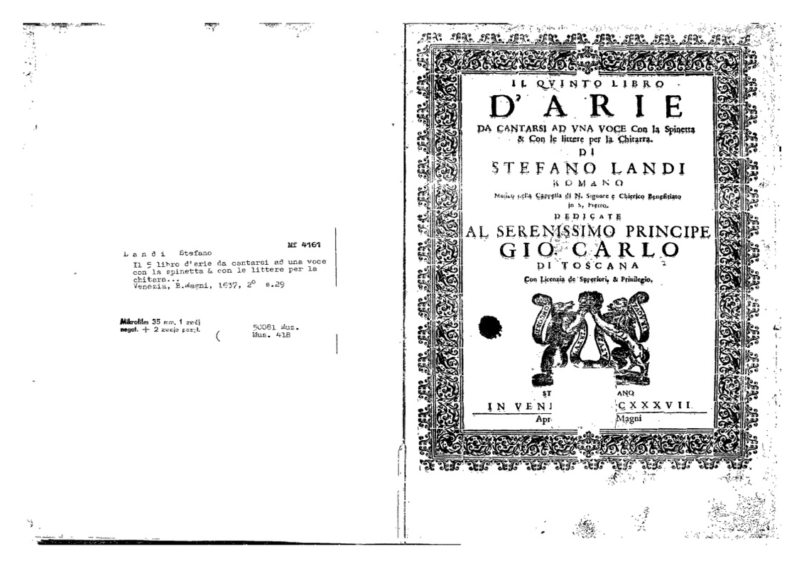 | Genre Categories | Arias; For voice, continuo; For voices with continuo; |