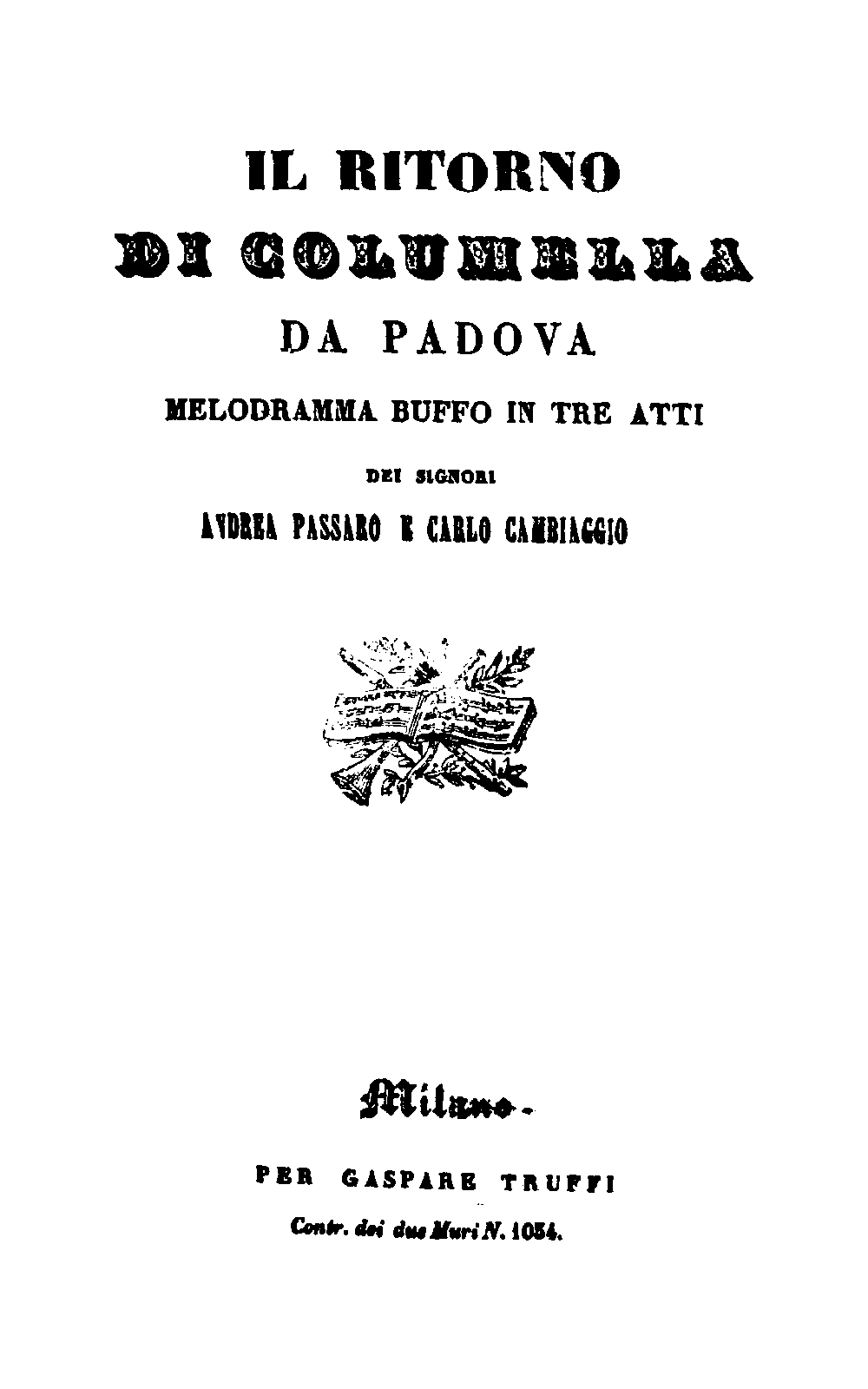 | Librettist | Carlo Cambiaggio (1798–1880), reduced by Andrea Passaro (fl.1826-1850) |