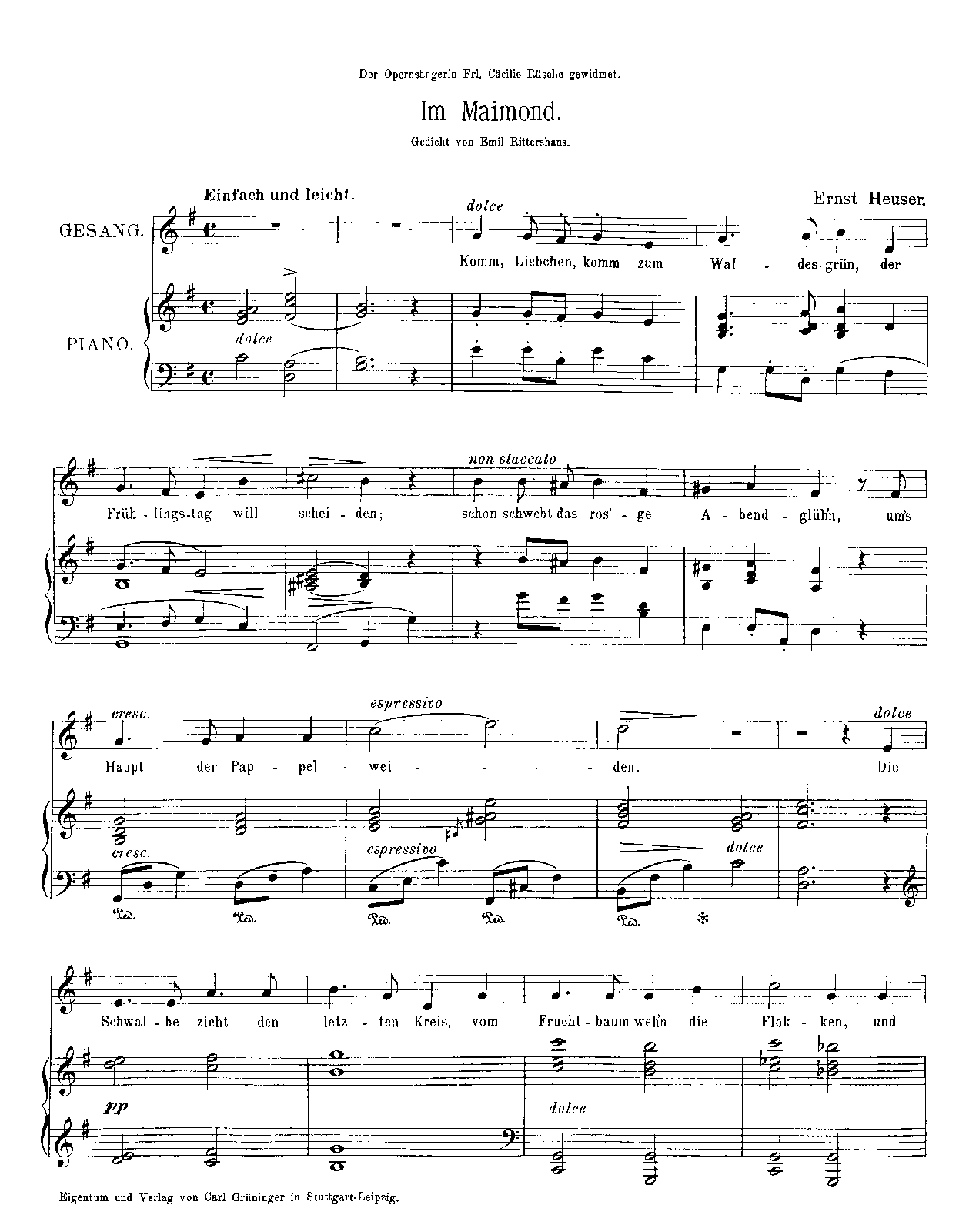 | Dedication | Der Opernsängerin Frl. Cäcilie Rüsche |