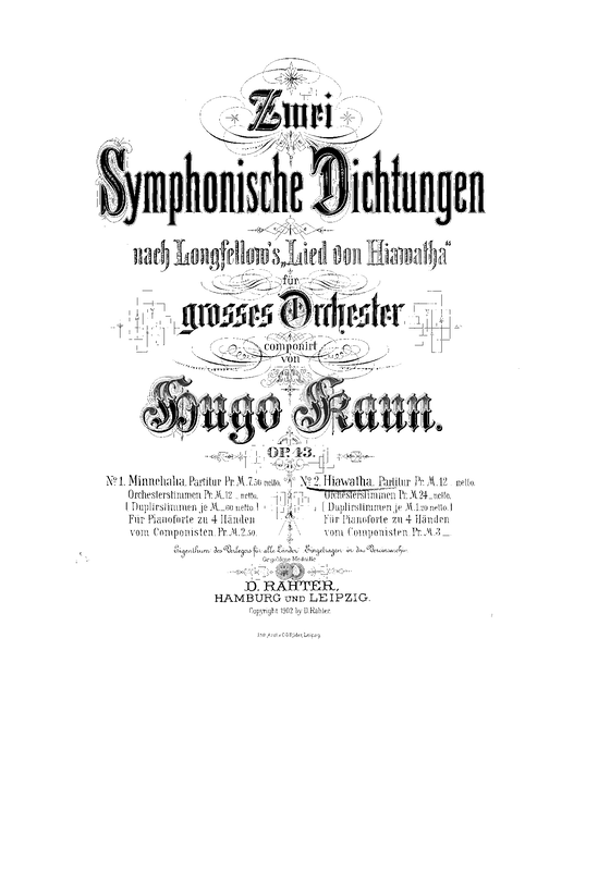 | Alternative. Title | Zwei symphonische Dichtungen nach Longfellow’s “Lied von Hiawatha” |