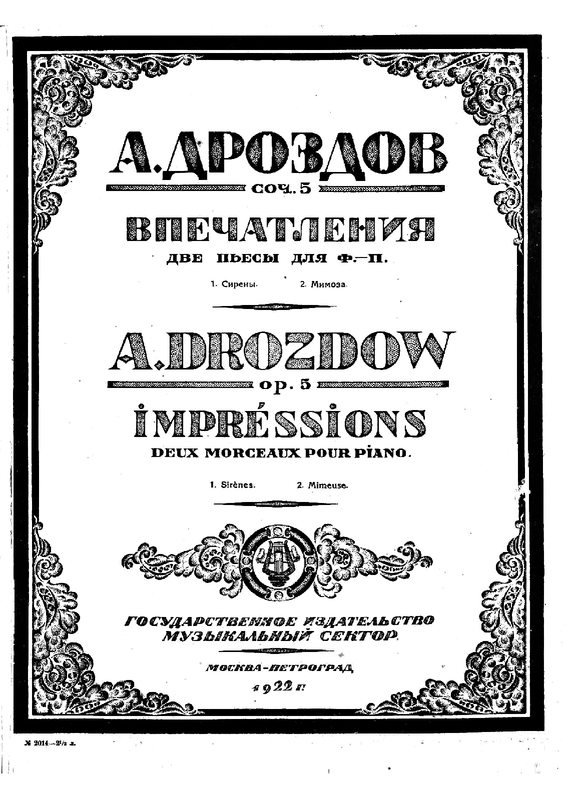 | Alternative. Title | Впечатления, две пьесы для фортепиано ; Impressions, deux pièces pour piano |