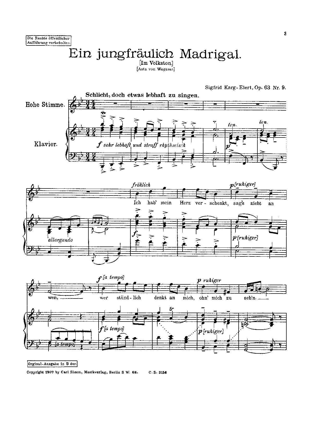 | Genre Categories | Songs; For voice, piano; For voices with keyboard; |