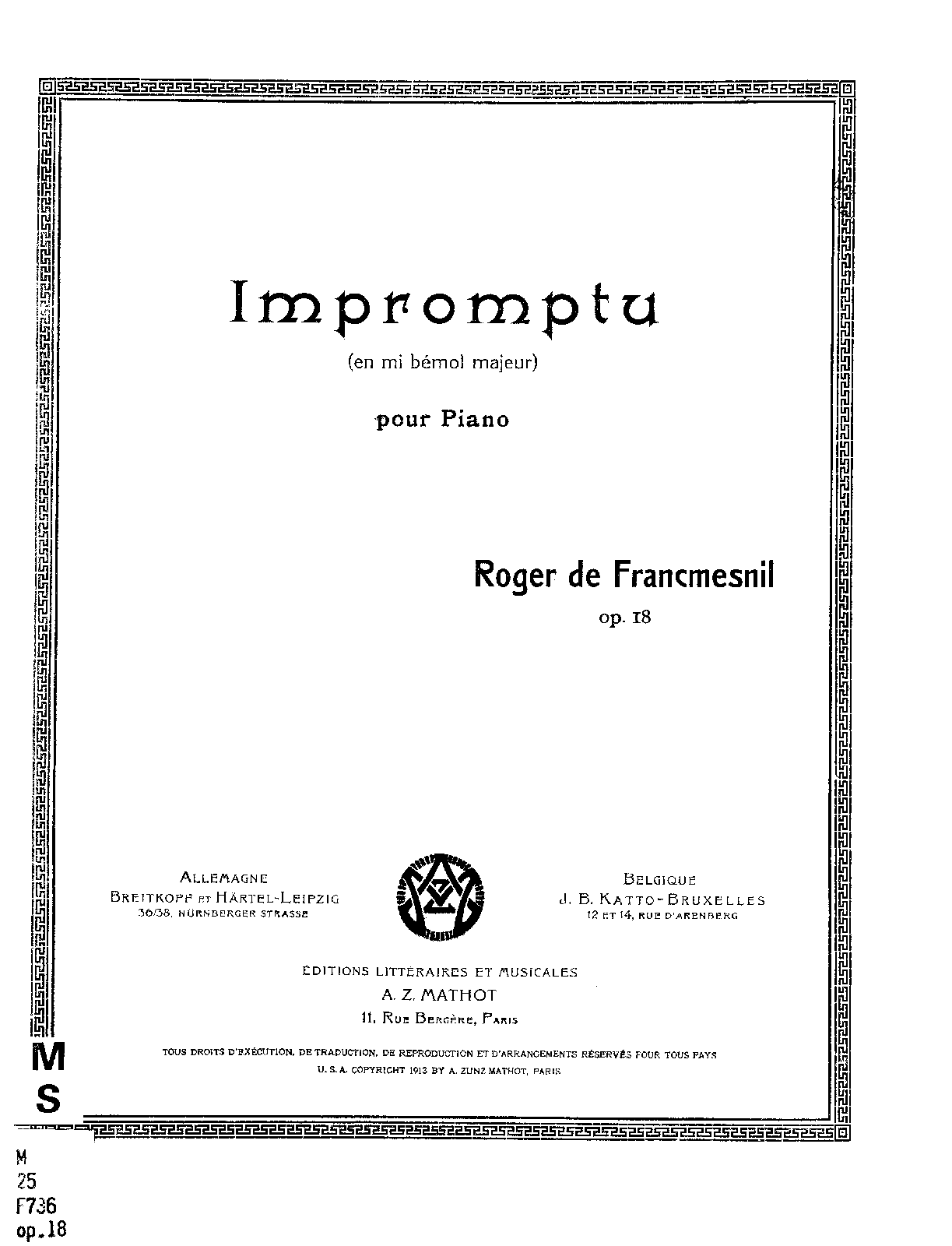 | Movements/SectionsMov'ts/Sec's | 1 impromptu |