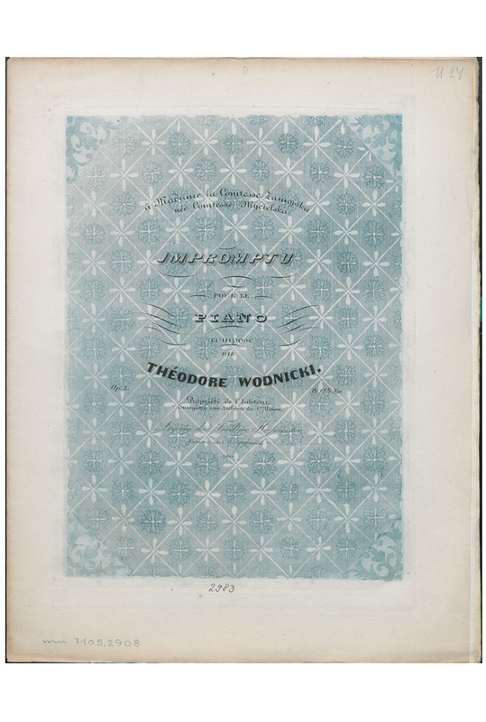 Dedicatee possibly Jadwiga Dzialynska Zamojska/Zamoyska, 1831-1922, apparently an author "d'une grande oeuvre". (Though in 1844, not yet, and do we know if the 1831-1922 person got married by age 13-odd as suggested by the combination of the dedication and this date of birth? If not yet married we should be searching for la comtesse Mycielska.)