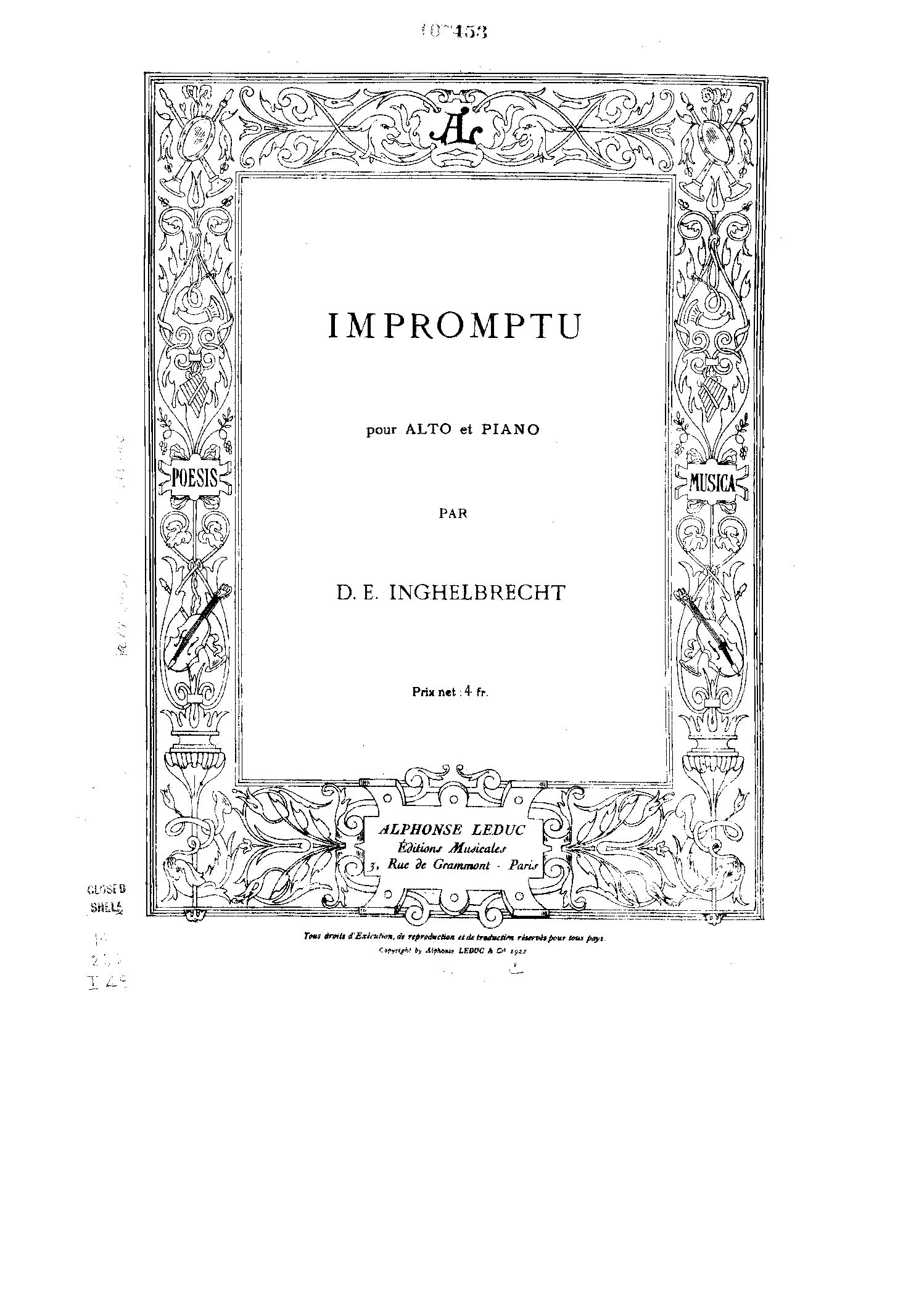Publisher. Info. Paris: Alphonse Leduc, 1922. Plate A. L. 16,539.