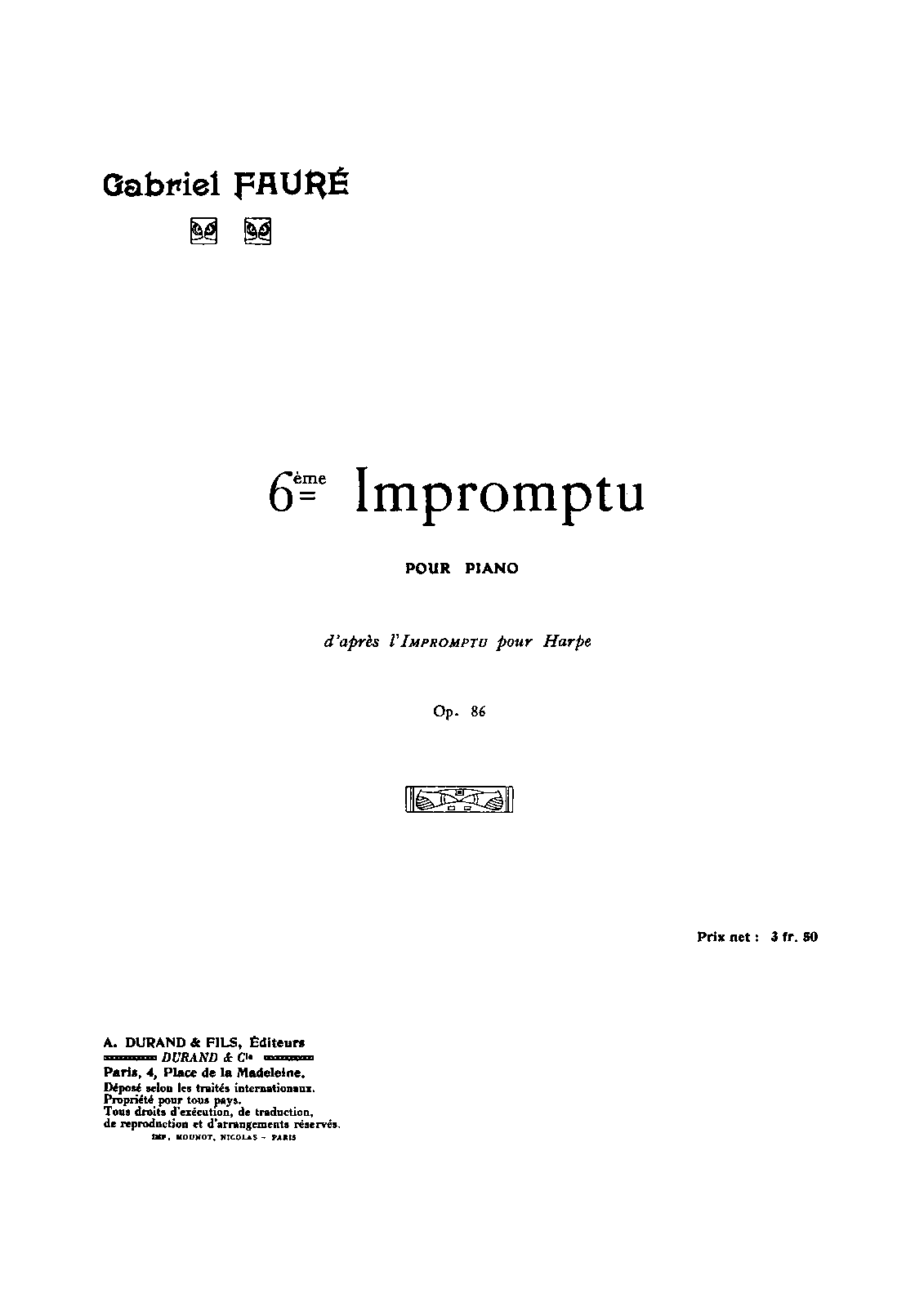 Publisher. Info. Paris: A. Durand & Fils, 1904. Plate D. & F. 6428.