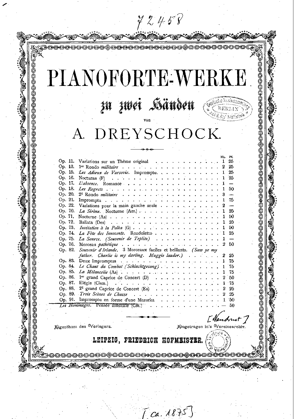 | Opus/Catalogue NumberOp./Cat. No. | Op.91 |