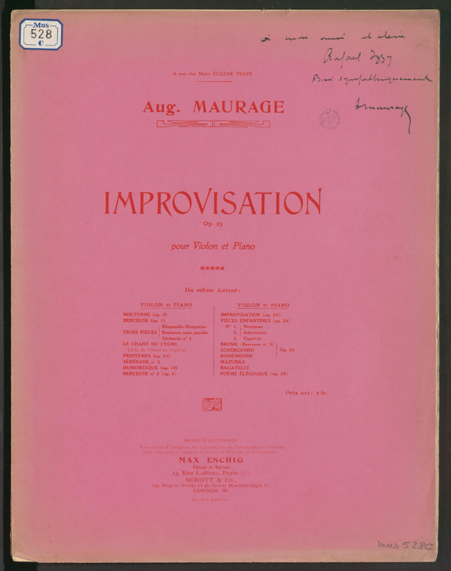 | Dedication | a mon cher Maitre Eugène Ysaÿe |