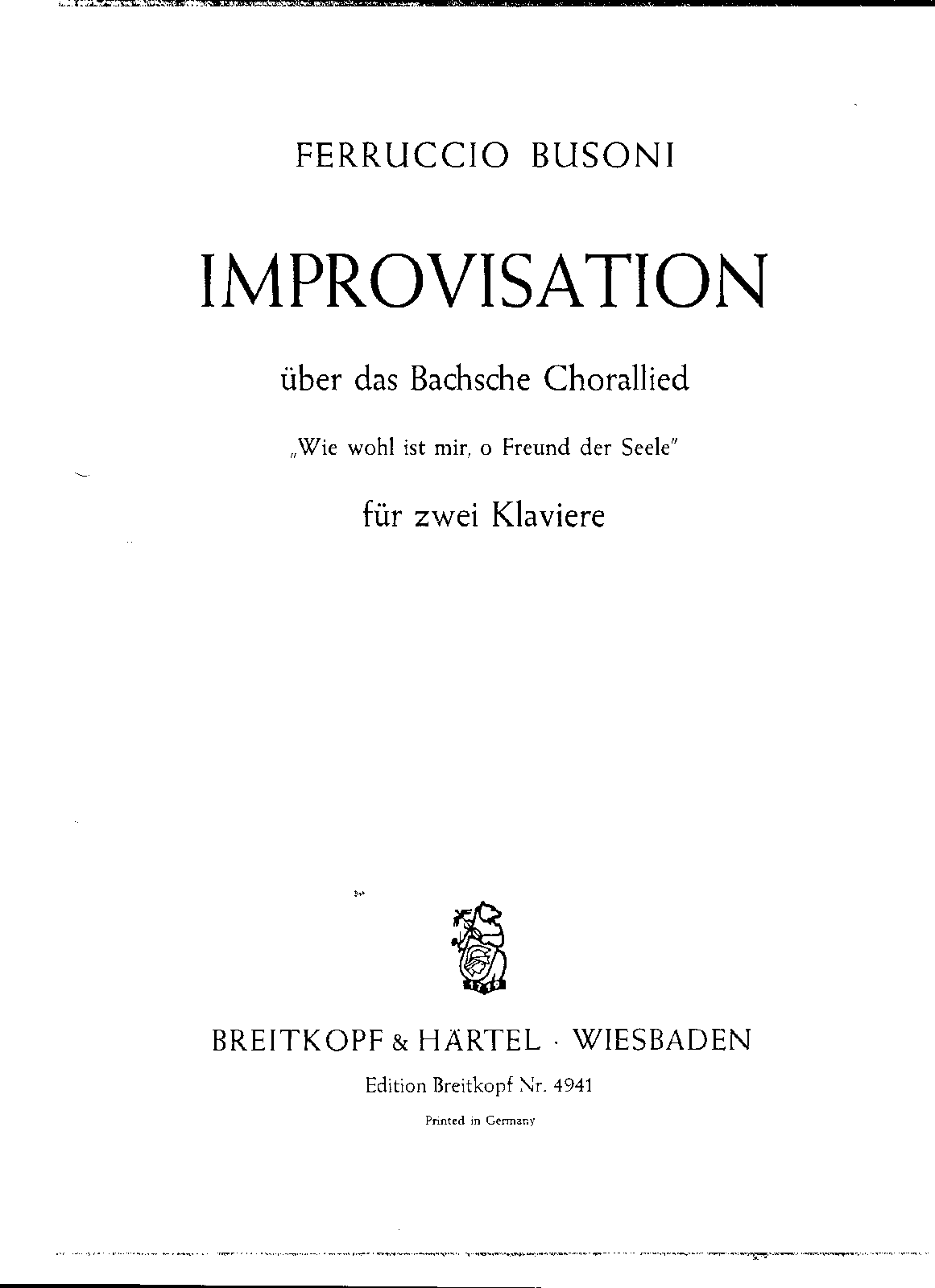 Improvisation über das Bachsche Chorallied "Wie wohl ist mir, o Freund der Seele" Improvisation on the Bach Chorale "Wie wohl ist mir"