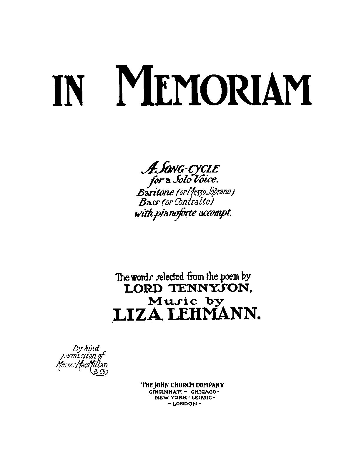 | First Publication | 1899 – Cincinnati: The John Church Company |